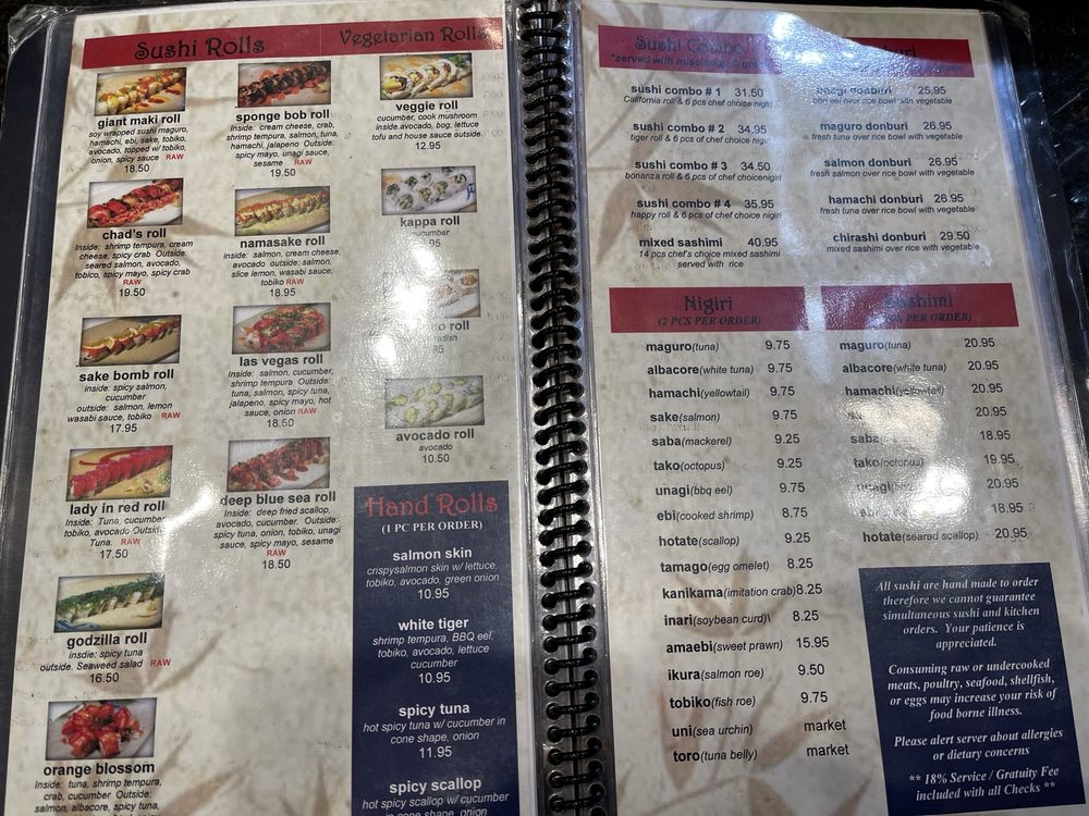 Bonanza roll and 6 piece chef's choice nigiri.